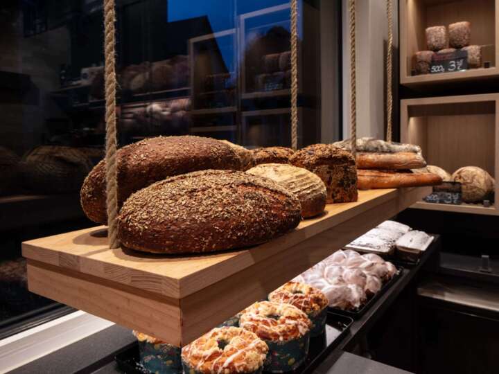 Nicht nur die Abläufe und die Präsentation, sondern auch der Umsatz seit dem Umbau. Die Brotschaukel wird mehrfach am Tag mit frisch gebackenen Spezialitäten bestückt, das Brot ist im Regal sichtbarer und selbst die Brötchen gehen besser als zuvor. Und obwohl statt der Tische nur noch Stehboards an der Wand und am Fenster angeboten werden, wird mehr Kaffee verkauft. Die neue Anordnung hat es erlaubt, dass eine Siebträgermaschine an der Rückwand platziert werden kann.