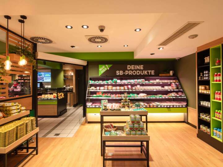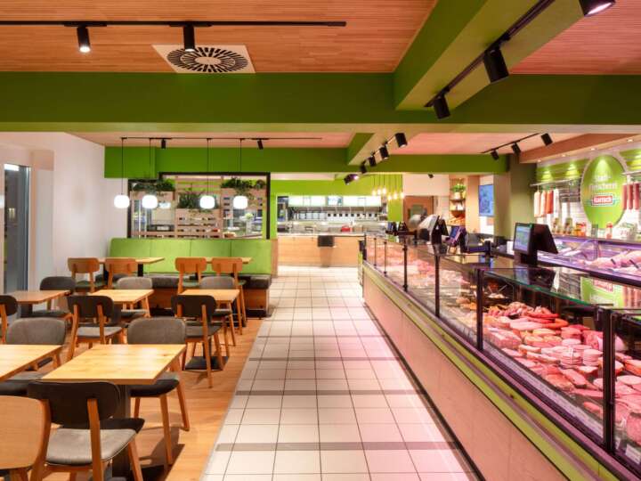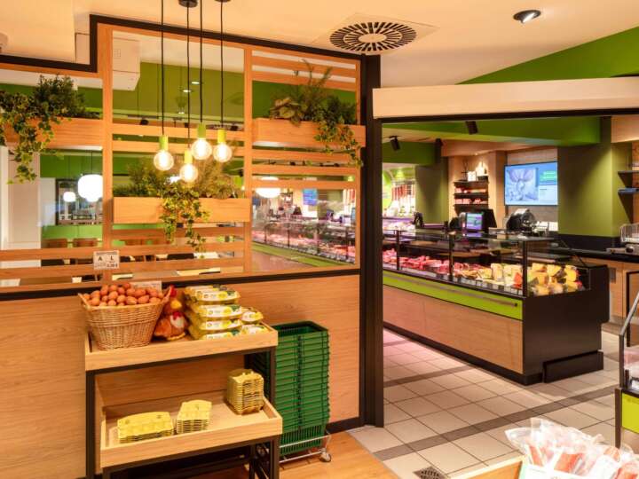 Die Geschäftsführung des Familienbetriebes nahm sich mit der Konzept- und Einrichtungsberaterin von AICHINGER und dem Architekten ihres Vertrauens viel Zeit für die Planung – mit Erfolg. Die Customer-Journey, das Flächenlayout, die Kühltheke, der Kassenbereich und vor allem der SB-Bereich sind bereits für zukünftige Anforderungen geplant und installiert.