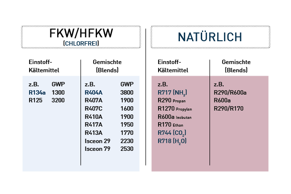 Es gibt einige nachhaltige und natürliche Alternativen für F-Gase als Kältemittel: