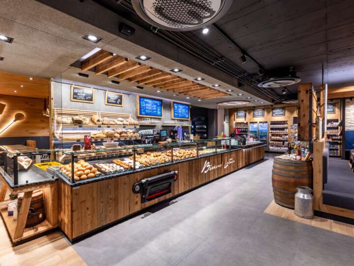 Der Klassiker – vor allem bei Bäckereien – sind nach wie vor alle Holzarten. Je natürlicher, ursprünglicher und uriger desto besser. Die meisten AICHINGER-Kund:innen fragen nach wie vor nach Holzdekoren. Holz wird meist als gemütlich aber auch als echt und bodenständig wahrgenommen. In den Bäckereien passt es daher auch perfekt zu deren Produkten Brot und Mehl.