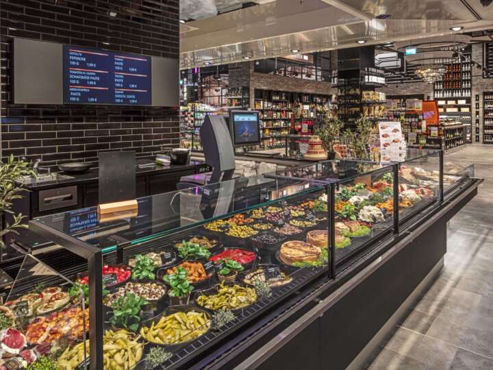 Bei Kühl- und Wärmetheken lohnt es sich, flexible Thekenmodule einzusetzen, die man je nach Bedarf von Bedienung auf Selbstbedienung umstellen kann. Gerade an Tagen mit weniger Kundenfrequenz kann der Verkauf so personalschonender gestaltet werden. „Dabei ist es aber wichtig, dass die Waren auch in der Selbstbedienungstheke hochwertig präsentiert werden und ein frisches Erscheinungsbild haben. Kundinnen und Kunden sollten das Gefühl haben, sich weiter im Frischebereich des Supermarkts zu befinden“, erklärt Patrick Simon. „Selbst wenn die Theke auf SB umgestellt ist, sollten Kundinnen und Kunden die Produkte als hausgemacht und frisch empfinden. Das funktioniert zum Beispiel schon, wenn jemand zu sehen ist, der im Rückbereich der Theke beispielsweise den hausgemachten Frischkäse anmischt.“