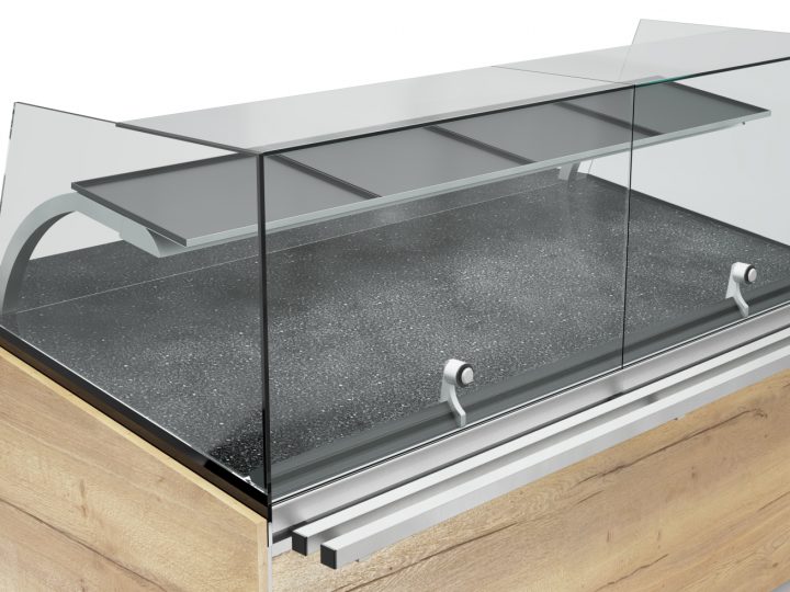 Auch im Gastronomie-Bereich sind Präsentationsmöbel, die sich flexibel bestücken lassen, gefragt: morgens kann so Frühstück angeboten werden, mittags gute Standardprodukte, wie Frikadellen, Schnitzel oder Fleischkäse, und im Anschluss, wenn das Mittagsgeschäft vorbei ist, kann die Theke mit SB-Variationen bestückt werden.