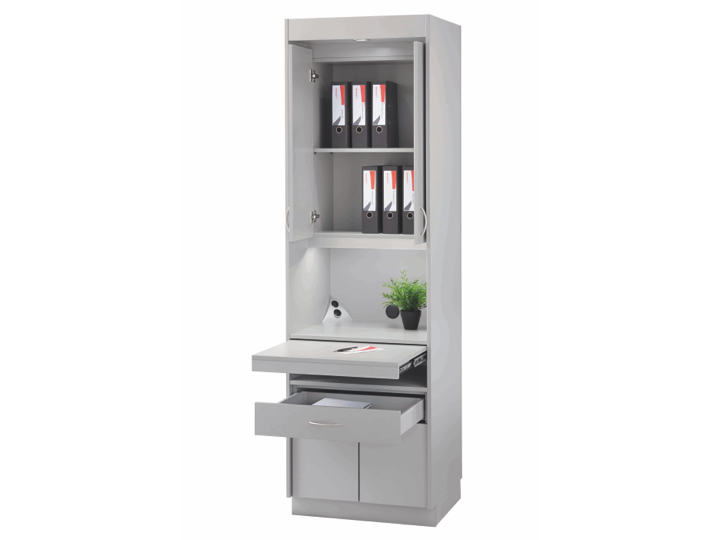 Kleines Möbel, maximaler Nutzen: Dank seiner intelligenten Aufteilung bietet T.office Ihnen auf 0,41 m² alles, was Sie für die Büroarbeit zwischendurch benötigen. Auf Wunsch mit umfangreichem Zubehör.