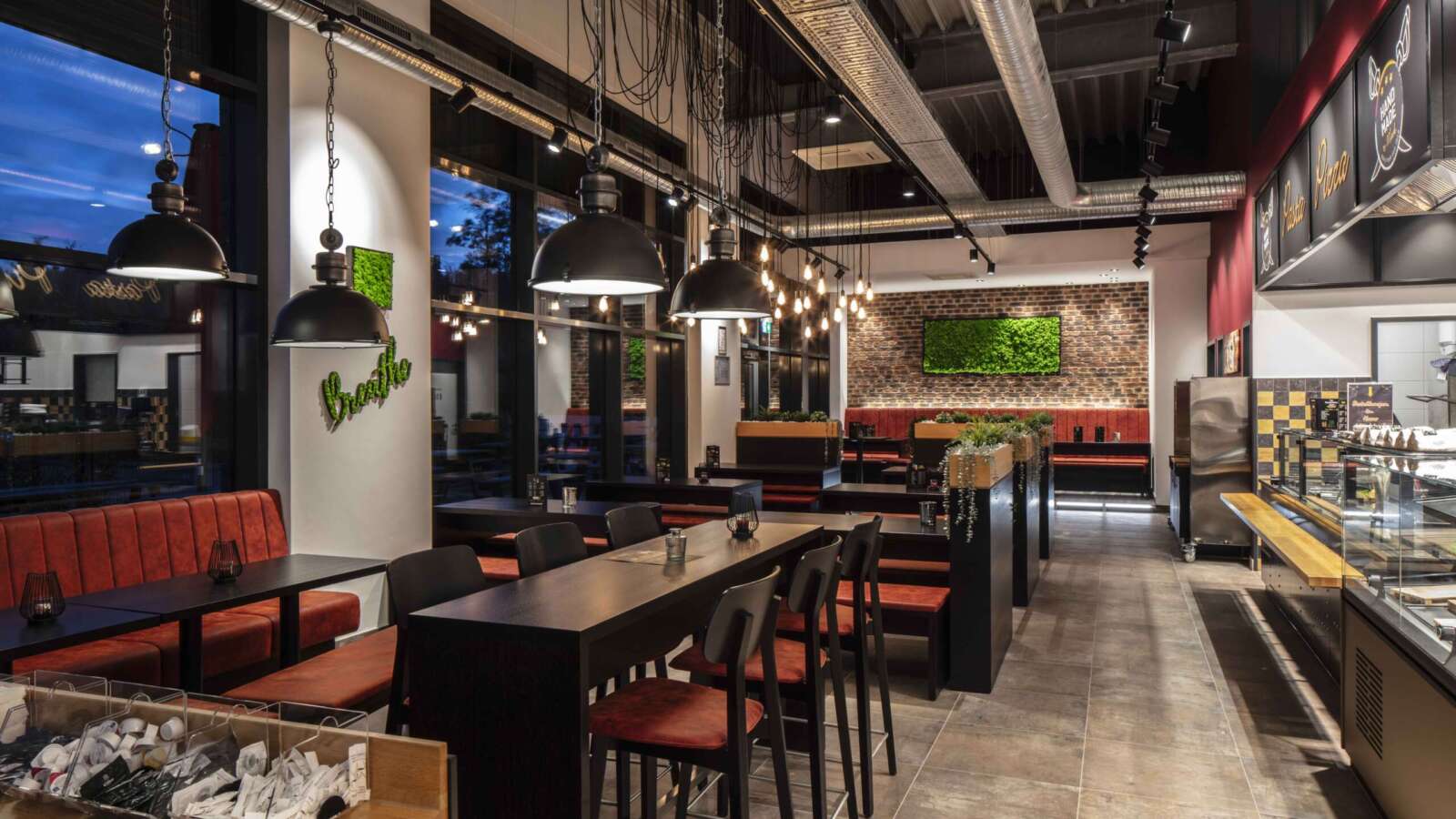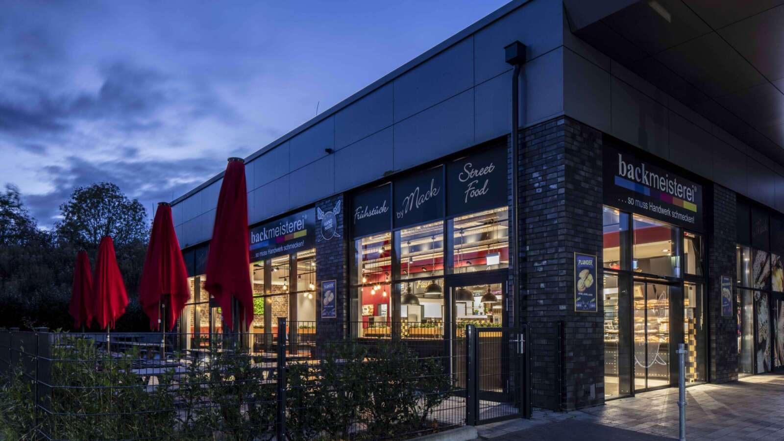 Seit 1948 ist die Backmeisterei Mack ein familiengeführter Handwerksbetrieb, in dem großer Wert auf die Qualität der Produkte gelegt wird. Vom Petit fours über Brot bis hin zu Konditoren-Eis werden alle Produkte in der offenen Backstube täglich frisch hergestellt. Beim Neubau des Cafés „Luises Factory“ in Dortmund-Hombruch hat AICHINGER das Shop-Design erstellt und die Filiale mit passenden Thekenlösungen ausgestattet. Das Besondere: Im Café gibt es neben den Backwaren auch warme Speisen wie handgemachte Pizza. Optisch ist „Luises Factory“ im Industrielook gehalten – die begrünten Wandelemente sind ein Hingucker. Die köstlichen Backwaren kommen in der Präsentationstheke ARTLine perfekt zur Geltung. Warme Spiesen werden in der Präsentationstheke GOURMET optimal präsentiert und energiesparend warmgehalten auf der Platte 64.