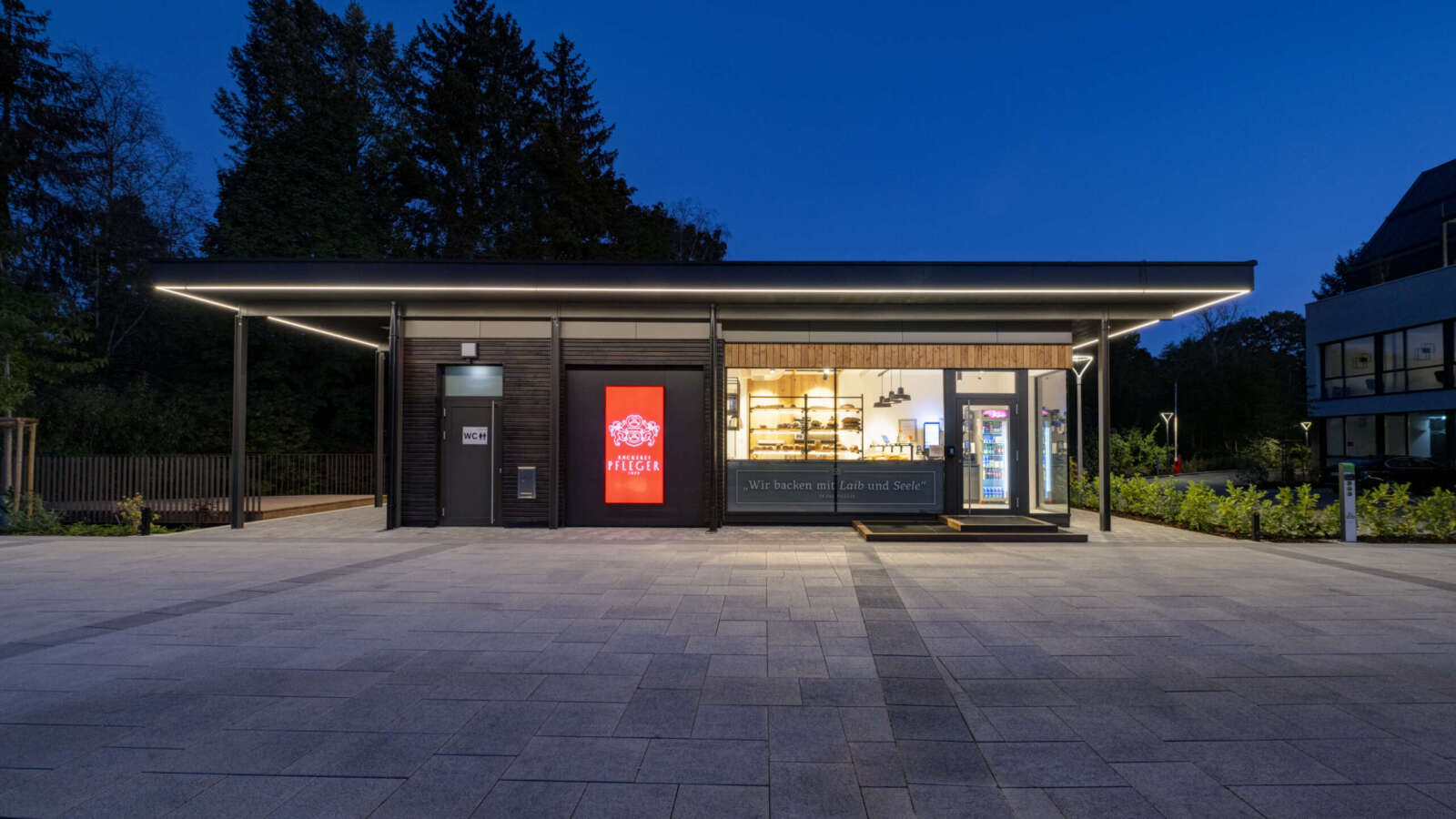 Bis mittags Bäckereibetrieb in Bedienung, nach Ladenschluss ein Smart-Store ohne Mitarbeitende: Bäckerei Pfleger hat, unterstützt von AICHINGER, die erste hybride Bäckerei in Österreich eröffnet. Täglich wird im Laden in Gratwein-Straßengel frisch gebacken. Nach Ladenschluss wird die Bäckerei zum autonomen Smart-Store, ohne Mitarbeitende. Die Glaselemente der speziell angefertigten Theke werden hochgeschoben und die Bedientheke wird zur SB-Theke. Die Ware wird abgepackt und mit einem Barcode versehen, der eigenständig gescannt werden kann.