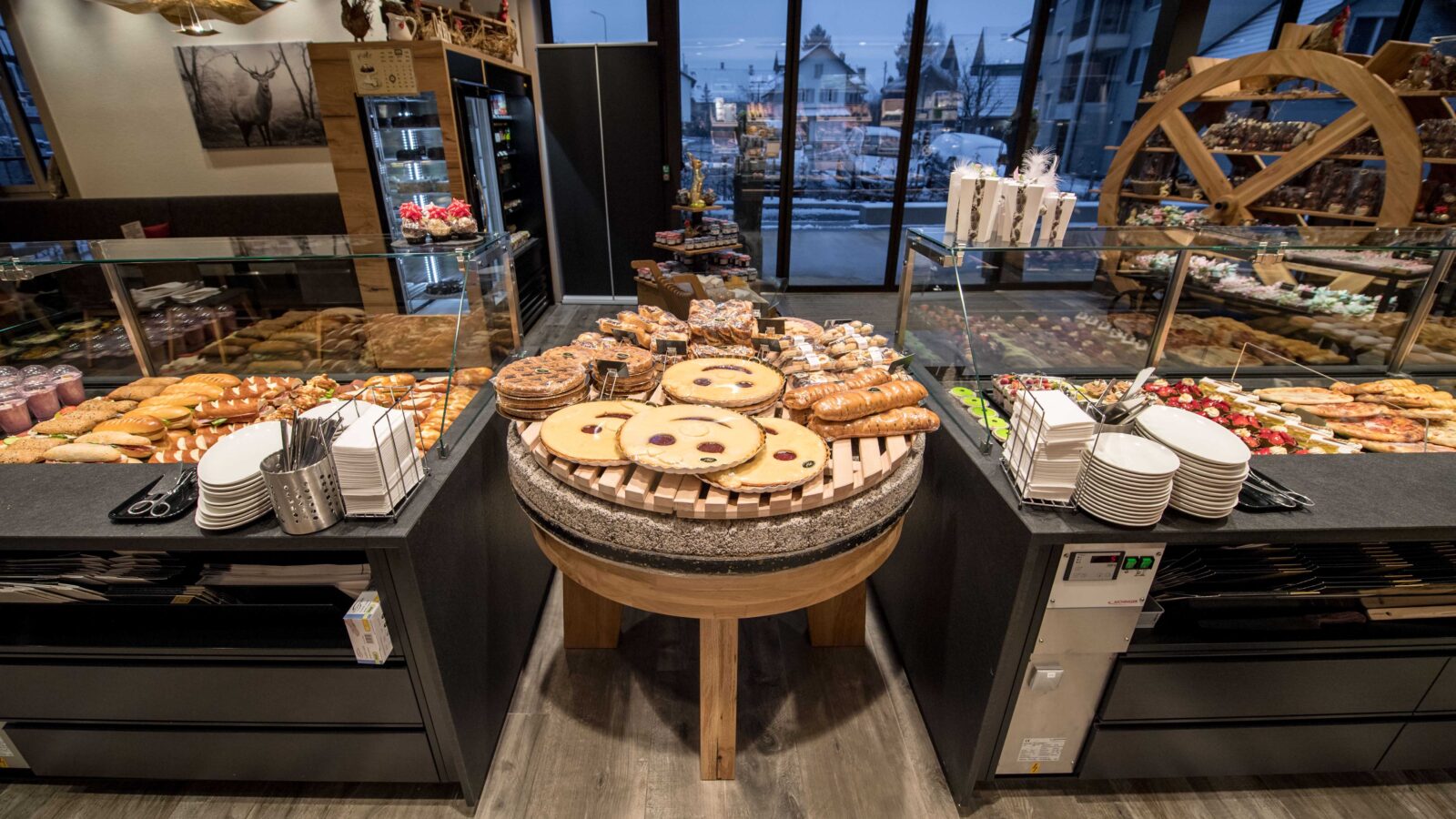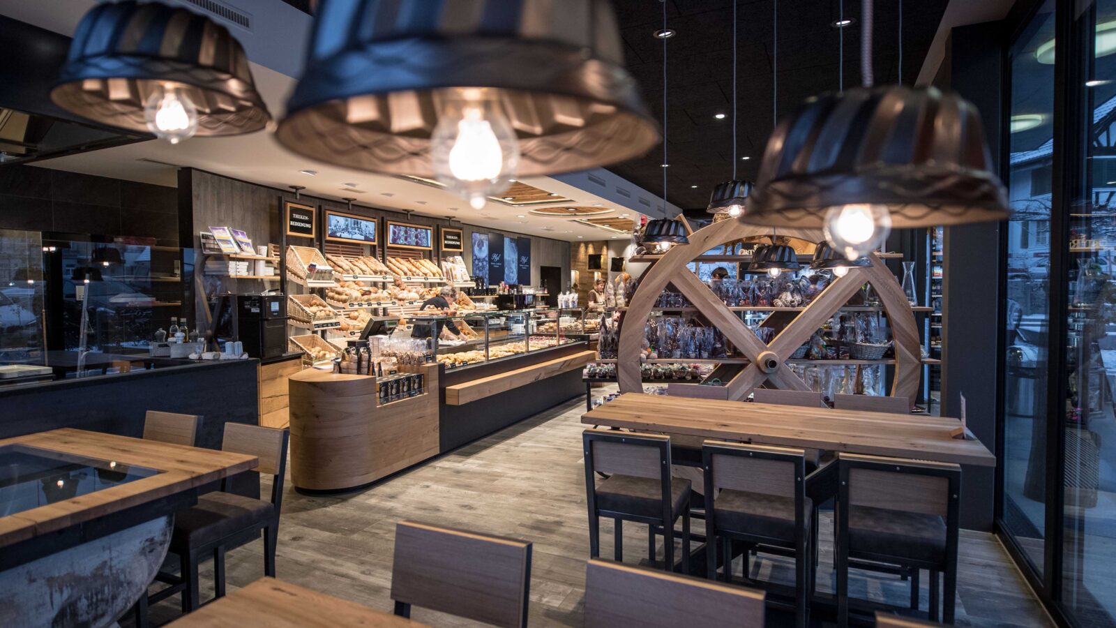 Bereits von außen zieht das Gebäude mit der roten Fassade die Blicke auf sich. Auch im inneren weiß der sehr edel gehaltene Laden zu überzeugen. Hier treffen verlockende Konditorei- und Confiserie-Produkte auf ein designstarkes Ladenkonzept. Der gesamte Laden sowie die ARTline-Theke bestehen größtenteils aus Echthölzern und bilden dadurch ein sehr stimmiges Bild. Die Besonderheit: Mit Hilfe der automatisch absenkbaren Frontscheibe wird das Umstellen von Bedienung auf SB-Betrieb noch einfacher.