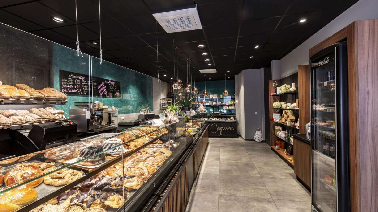 AICHINGER hat in der ca. 70m² großen Bäckerei und Konditorei in der Innenstadt eine ARTline-Theke und ein PANEVARI® Brotregal verbaut und unser Tochterunternehmen we-shoplight sorgt mit dem perfekten Lichtdesign für Wohlfühl-Ambiente.