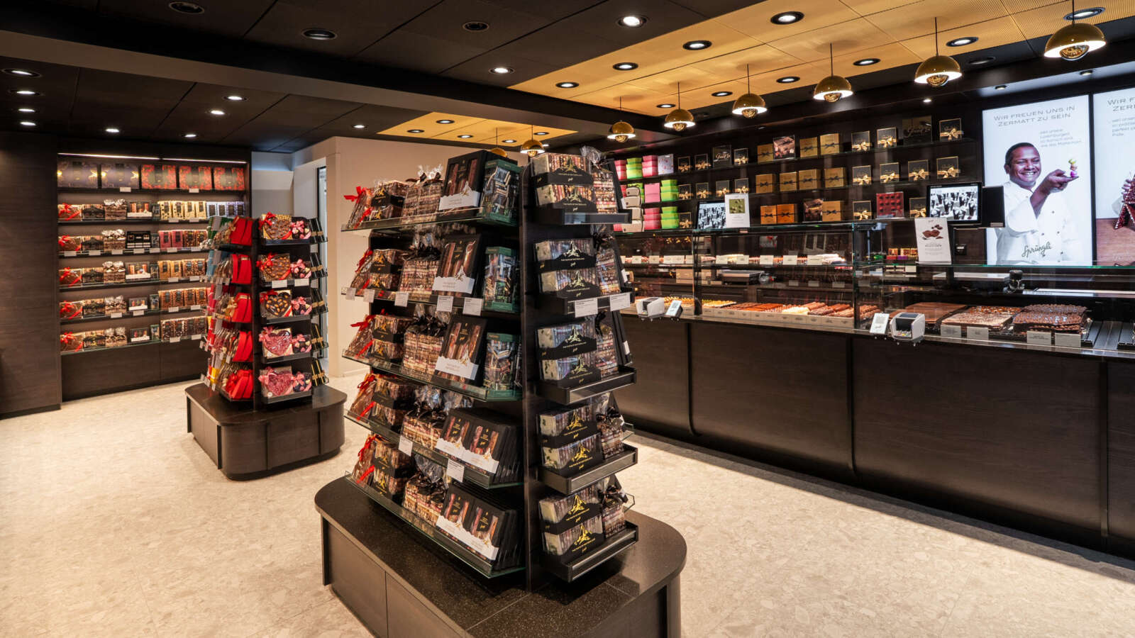 Am Fuße des Matterhorns ist ein neuer Genuss-Hotspot entstanden: Die traditionsreiche Confiserie Sprüngli hat im Mai 2025 ihre erste Filiale im Wallis eröffnet – mitten an der Bahnhofstraße von Zermatt. Auf 52 m² präsentiert sich das neue Verkaufsgeschäft als architektonisch eleganter Rahmen für feinste Pralinés, luftig-leichte Luxemburgerli und frische Bruchschokoladen. AICHINGER durfte bei diesem Projekt die passenden Kühltheken und den kompletten Ladenbau liefern – maßgeschneiderte Lösungen, welche die hochwertigen Produkte von Sprüngli auf ideale Weise inszenieren und sich harmonisch in das stilvolle Boutique-Design einfügen. Besonderes Highlight: Die hauseigene Chocolathèque, in der Besucher ihre persönliche Bruchschokolade zusammenstellen können – frisch und von Hand vor Ort gebrochen. Auch eine speziell designte Schokoladentafel in Form des Matterhorns unterstreicht den exklusiven Charakter des Stores.