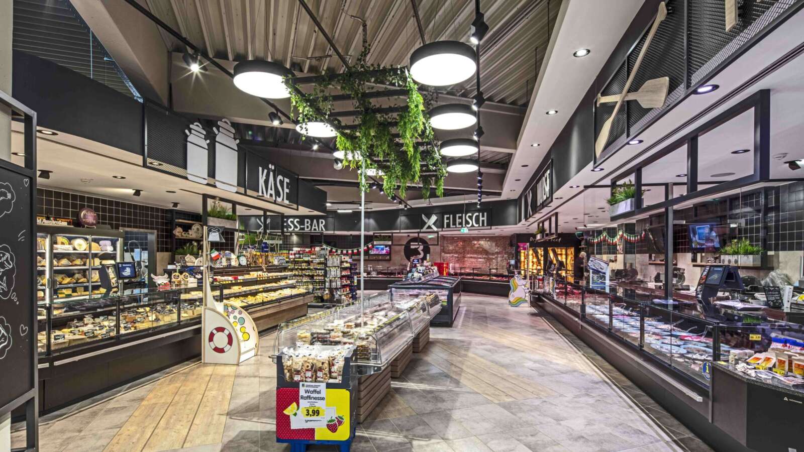 Auf rund 2.000 Quadratmetern präsentiert EDEKA Brüggemeier in Geldern sein Vollsortiment. Beim Neubau der Filiale waren wir für den gesamten Frischebereich verantwortlich und haben das passende Thekenkonzept geliefert: Neben den TopSpot MIO+ Kühlmöbeln und unserer Kühltheke SIRIUS®3 kam auch unser halbrundes Präsentationsmodul MaxxPoint zum Einsatz. Ein Highlight im Frischebereich ist das sich drehende Thekenmodul SeaMaxx – in Crushed Ice, ganz ohne zusätzliche Kühlung, werden hier hochwertige Frischeprodukte perfekt in Szene gesetzt.