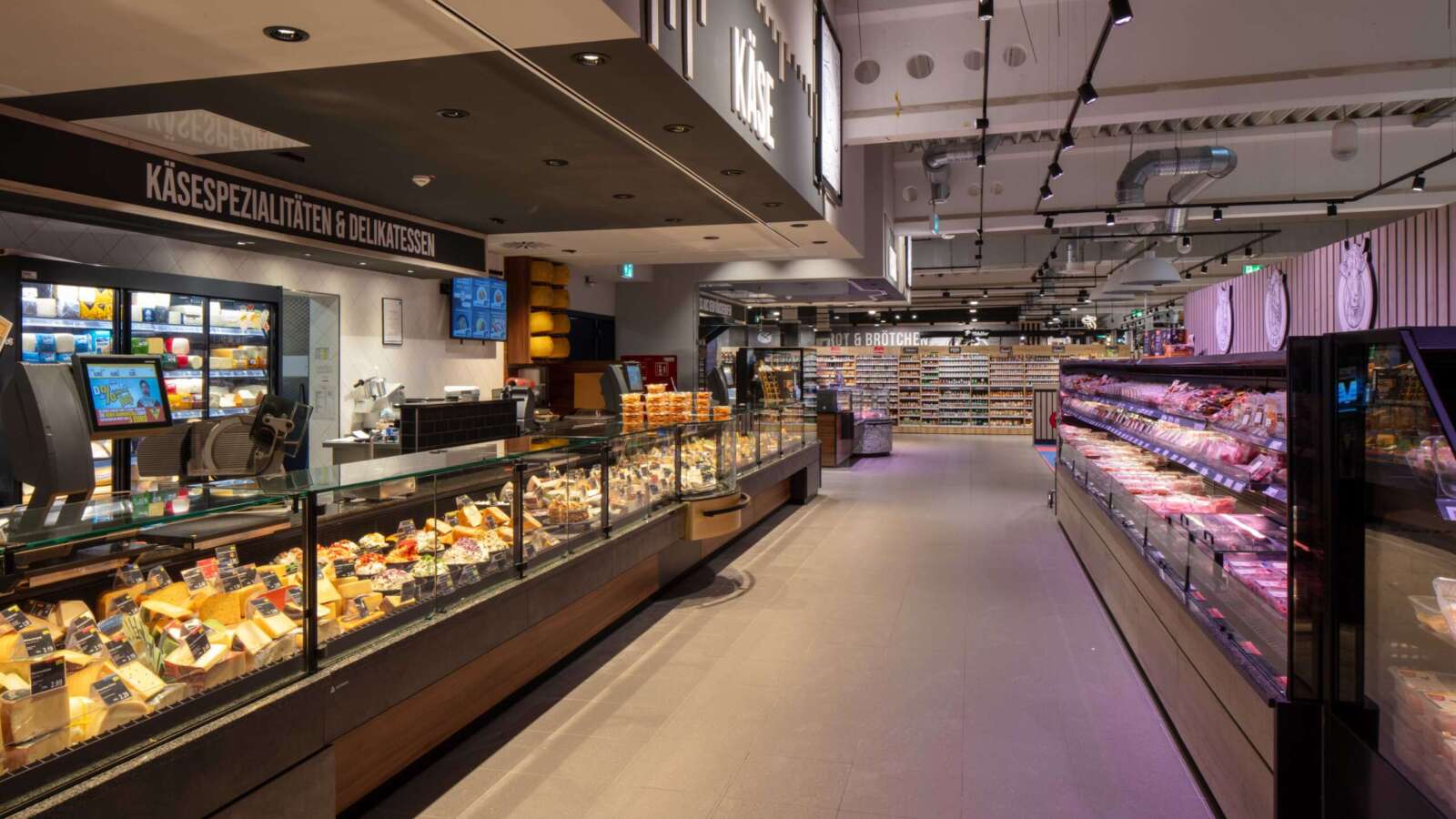 Modernisierung trifft Frischekompetenz – EDEKA Center Bruns in Aurich erstrahlt in neuem Glanz. Nach umfangreichem Umbau und einer durchdachten Erweiterung präsentiert sich das EDEKA Center Bruns als moderner Frischemarkt mit besonderem Augenmerk auf Qualität und Erlebnis. Im Mittelpunkt des neuen Konzepts steht der neu gestaltete Frischebereich – geplant, designt und ausgestattet von AICHINGER. Besondere Highlights setzen starke Akzente. Ein absoluter Blickfang ist unsere runde Umluftkühltheke AirMaxx mit einer Front aus edlem Steinmosaik, in der frischer Fisch eindrucksvoll präsentiert wird. Im Fleischbereich zieht der Schinkenhimmel alle Blicke auf sich, während unser SetPOINT in eleganter Glasvitrinenoptik einen weiteren Eyecatcher im Thekenverlauf bildet und der hochwertigen Ware eine edle Bühne bietet.