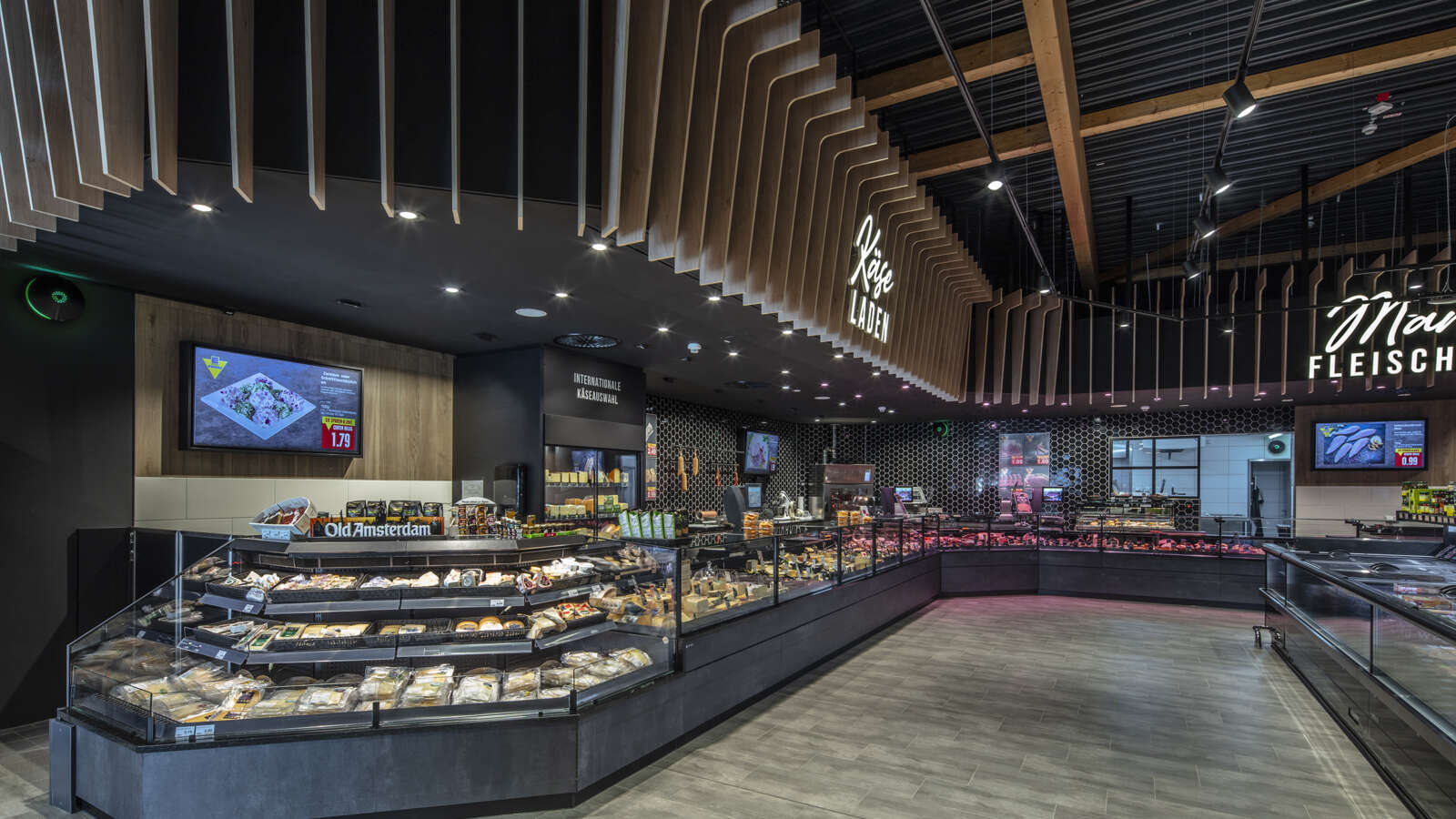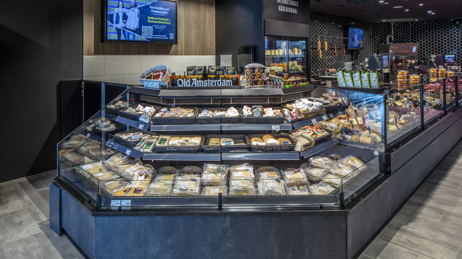 Frisch, regional, modern – so präsentiert sich das EDEKA Center Holling in Geestland-Langen nach seinem Umbau. AICHINGER durfte bei der Neugestaltung der Filiale passgenaue Thekenlösungen für den Frischebereich finden. Entstanden ist ein großzügiger Bedienbereich für Fleisch, Wurstwaren und Käse – zum Einsatz kam dafür unsere preisgekrönte Kühltheke SIRIUS®3, in der die Waren verkaufsstark in Szene gesetzt werden. Verpackte Waren finden in einer weitläufigen SB-Strecke, bestehend aus mehreren Modulen unseres SB-Kühlregals TopSpot MIO+, ihren Platz.