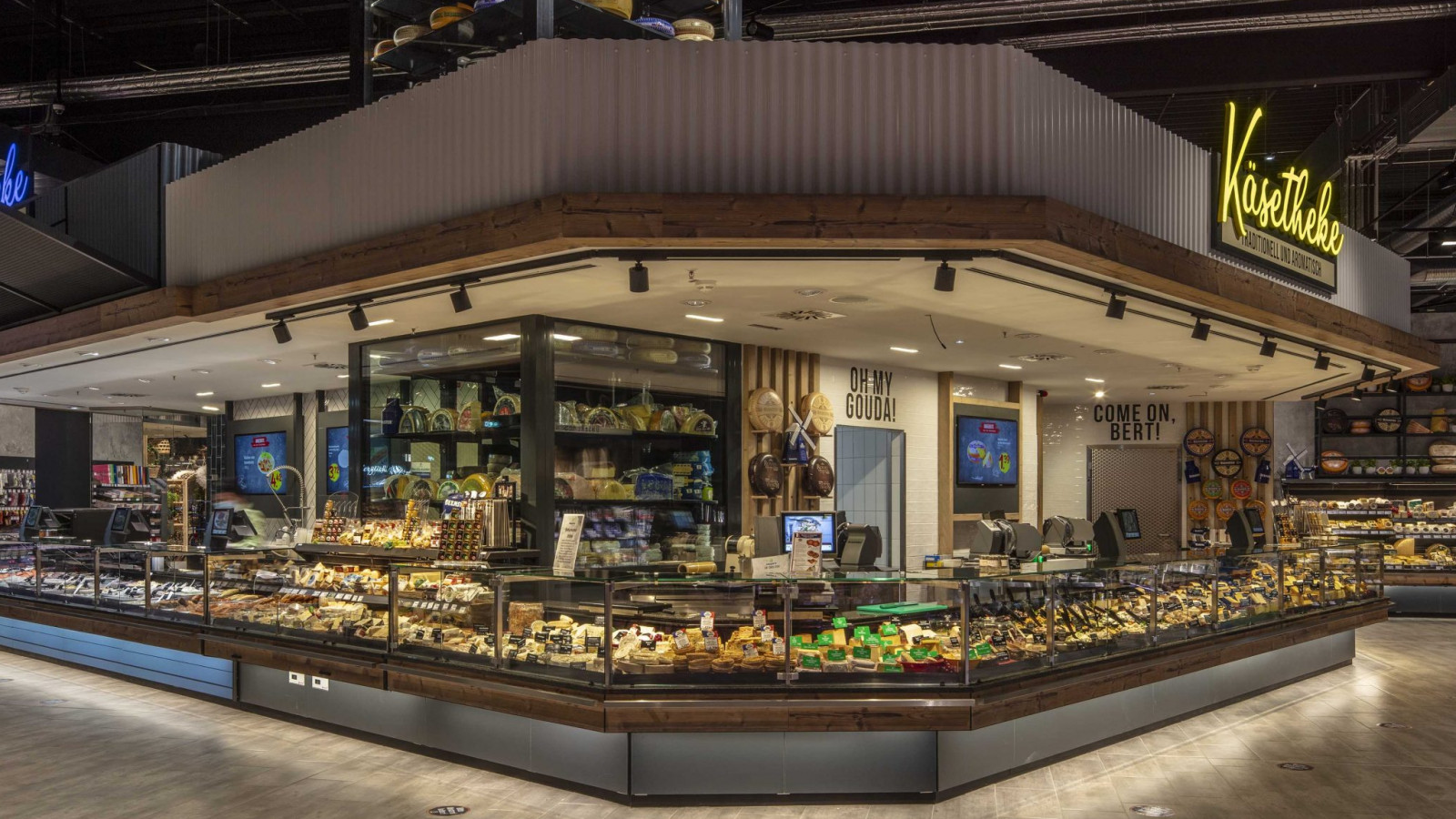 Hochwertige Materialien, modernstes Ladendesign und neueste Technik laden zum Einkaufen auf gigantischen 5.400 m² Verkaufsfläche ein. Ausgestattet mit einer Vielzahl an Bedientheken im Frischebereich, einem Dry Aged Reiferaum für exklusive Fleischprodukte und einem eindrucksvollen Käsetower.