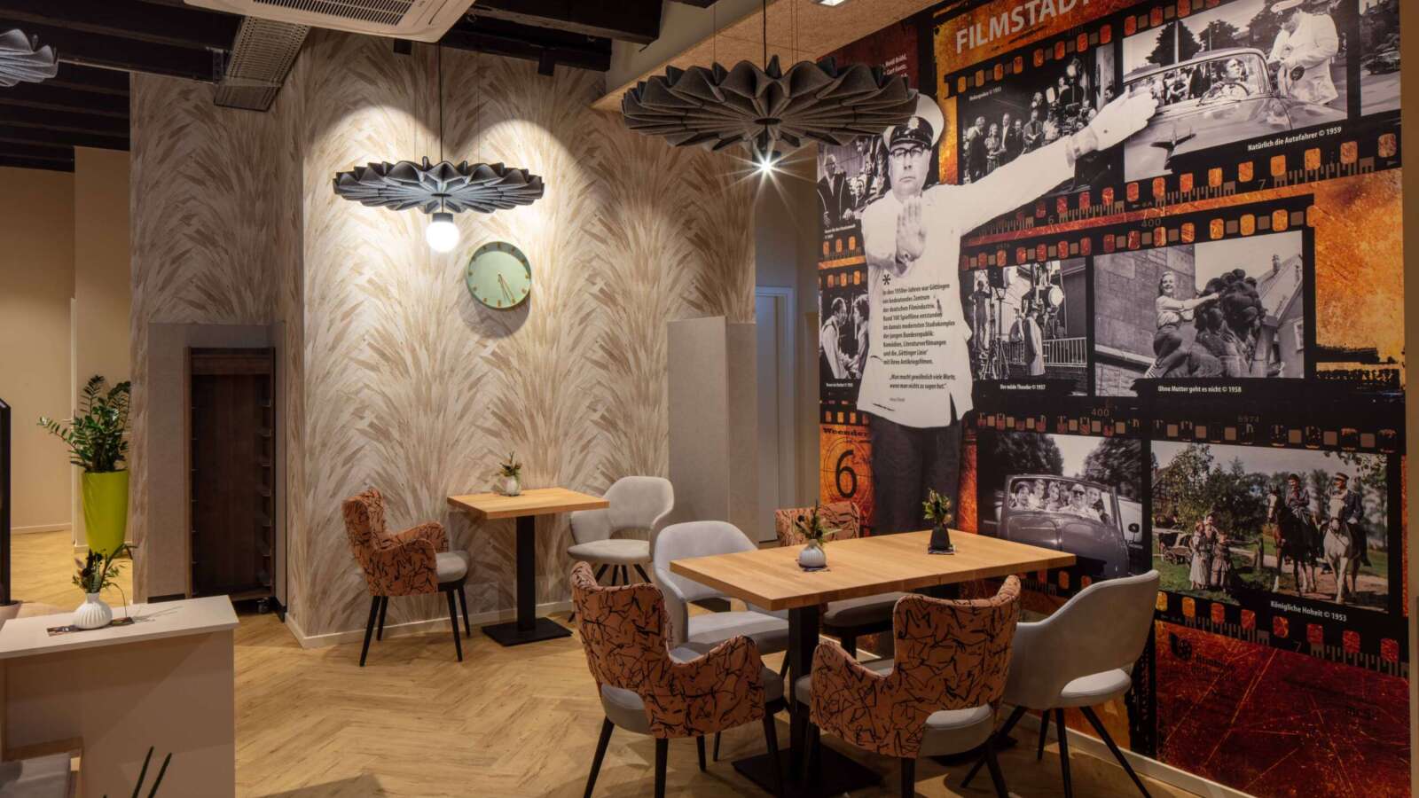 Ein einzigartiges Ambiente und eine natürliche Einrichtung – dadurch zeichnen sich die mannamia-Cafeterien der Feinbäckerei Ruch aus. Beim Umbau der mannamia-Filiale in Göttingen, durfte AICHINGER den Familienbetrieb tatkräftig unterstützen. Die Basis bildete eine ganzheitliche Standort- und Zielgruppenanalyse, für die wir die Brand & Retail Experten der Gruppe Nymphenburg ins Boot geholt haben. Das Besondere daran: Die Analysen geben dezidiert Antwort auf die Frage der am Standort befindlichen Kundengruppen und Zielkunden der Feinbäckerei Ruch. Die gewonnenen Erkenntnisse überführte die Gruppe Nymphenburg in konzeptionelle Eckpunkte für u.a. Formatausprägung, Look&Feel und Flächenlayout, die wir vom kreativen und funktionellen Shop-Design bis zur Realisierung umgesetzt haben. Da in den mannamia-Standorten Gemütlichkeit und Natürlichkeit im Fokus stehen, wurden nur echte Materialien wie Echtholz und Granit verwendet. Helle Holz- und zarte Grüntöne verleihen der Cafeteria ein einladendes Ambiente, maßgeschneiderte Einrichtungslösungen setzen besondere Highlights. Ein echter Hingucker sind zudem die besonders gestalteten Wände – auch eine Hommage an die Filmstadt Göttingen.