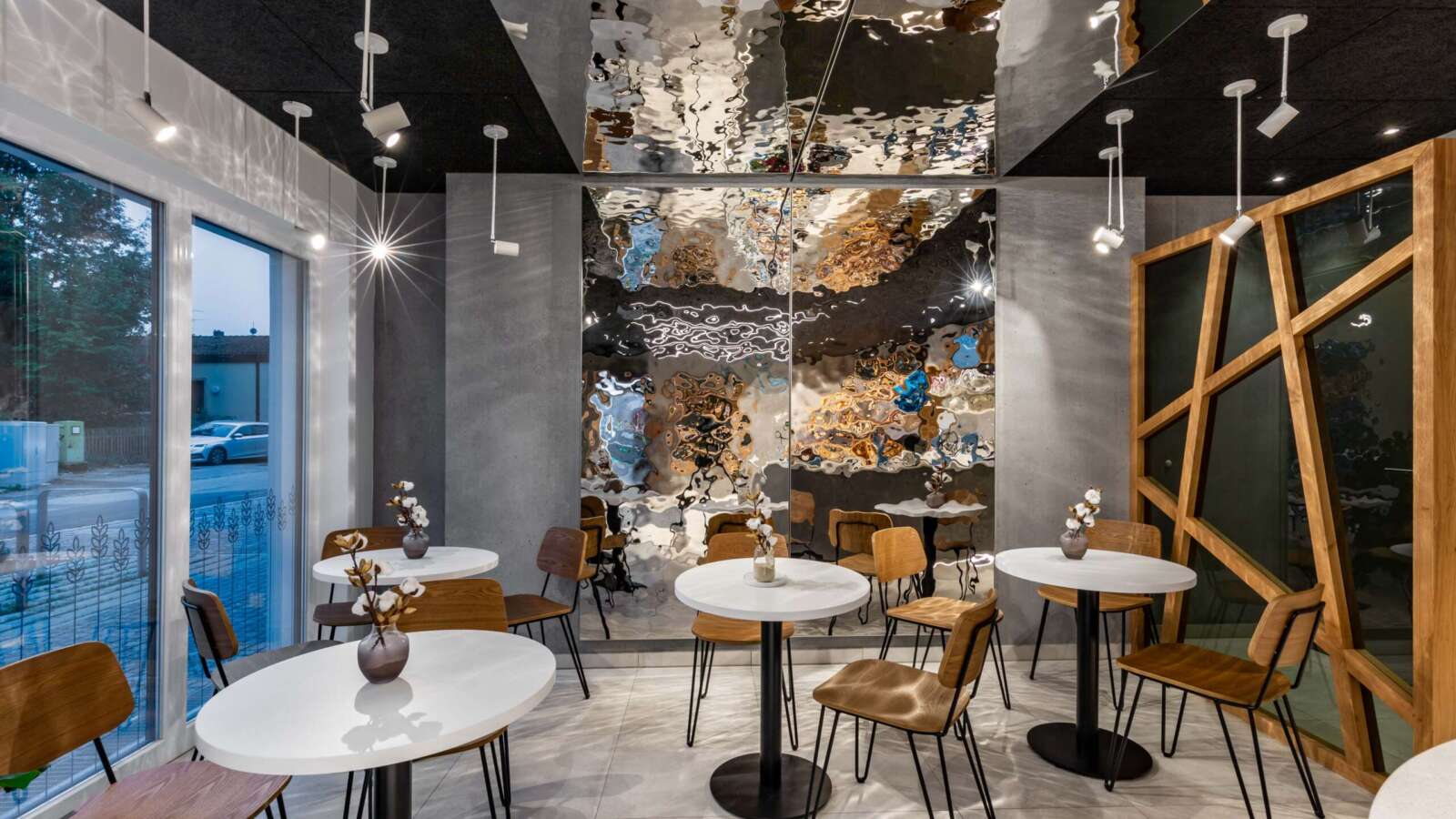 Die neueste Filiale in Berg am Starnberger See überzeugt mit rauer Eleganz und exklusivem Design. Das Einrichtungskonzept vereint den historischen Hintergrund des beschaulichen Orts mit modernem Flair. Eindrucksvolle Details wie die großflächigen Spiegelpaneele nehmen dabei Bezug auf den bis heute ungeklärten Tod König Ludwig II am Ufer des Sees.