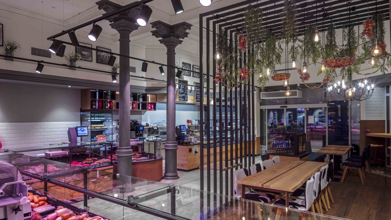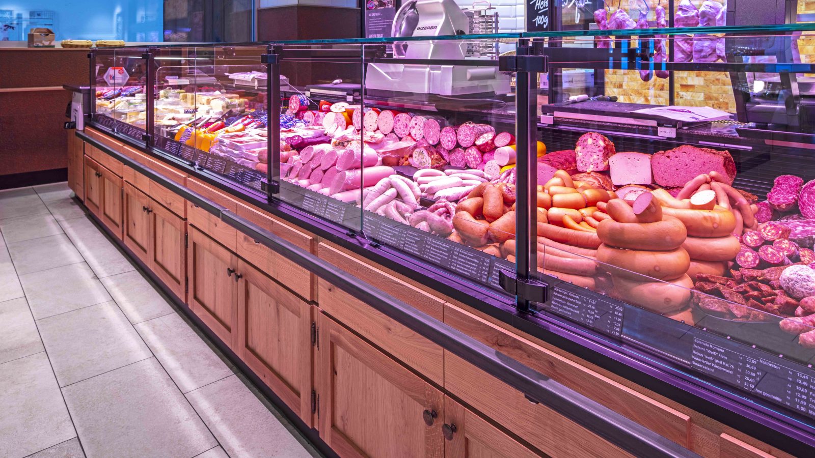 Für die Gestaltung der großzügigen Auslagefläche, fertigten wir individuelle SIRIUS®3-Kühltheken, mit denen die regionalen Köstlichkeiten perfekt in Szene gesetzt werden. Gleichzeitig schafft unsere AirMaxx Umluftkühltheke mit ihrer runden Form einen räumlichen Übergang zur Gourmet-Theke und der Platte 74, mit denen die Waren im Eingangsbereich perfekt präsentiert werden können.